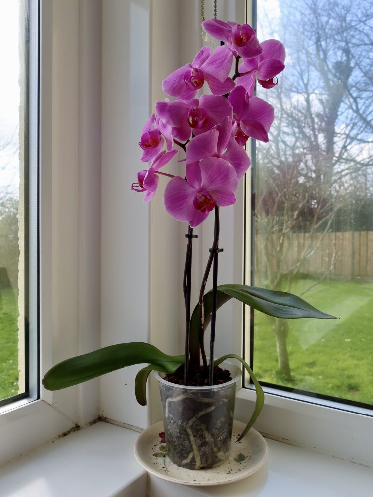 Back in May 2019 I published a post featuring my newly acquired Orchid. Me and that orchid have been through a lot since then – it almost died, but I managed to nurse it back to life and it even flowered again – I was thrilled. Unfortunately when my puppy Barney arrived I had to keep the orchid out of his way, and I stupidly put it in the conservatory where it got far too hot and it now looks like this….