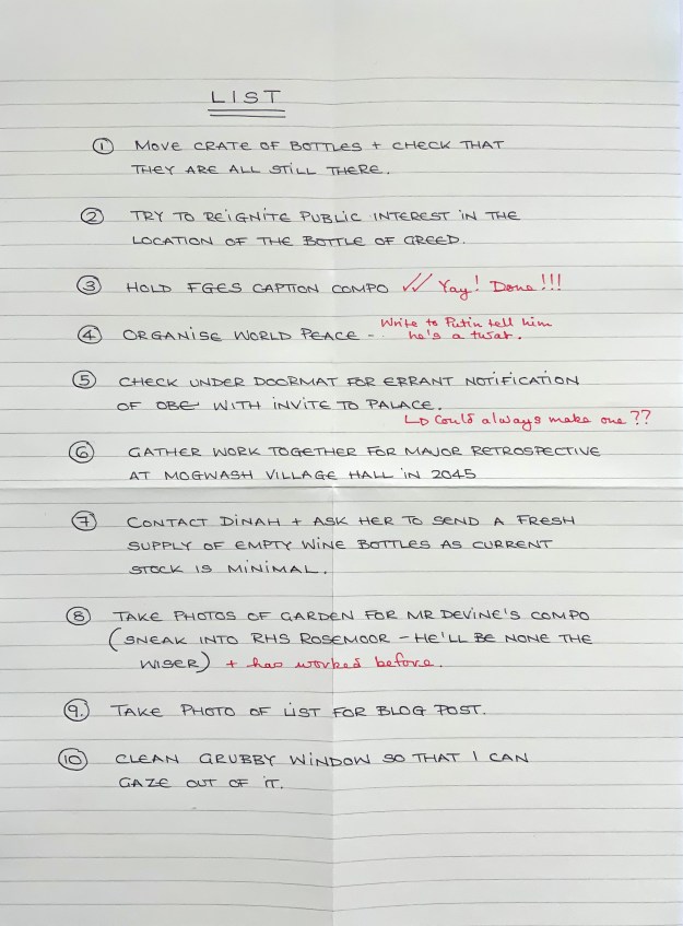 I glared at him and continued, “do you have my left wellington boot?”