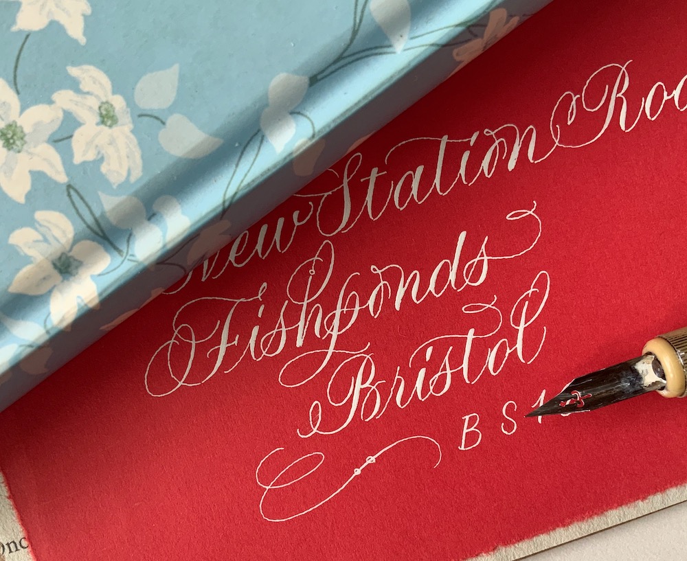 I have now decided to make my pension tracing efforts into a calligraphy project. My first envelope to them was addressed in block capitals in Bic Biro. This is my second envelope…